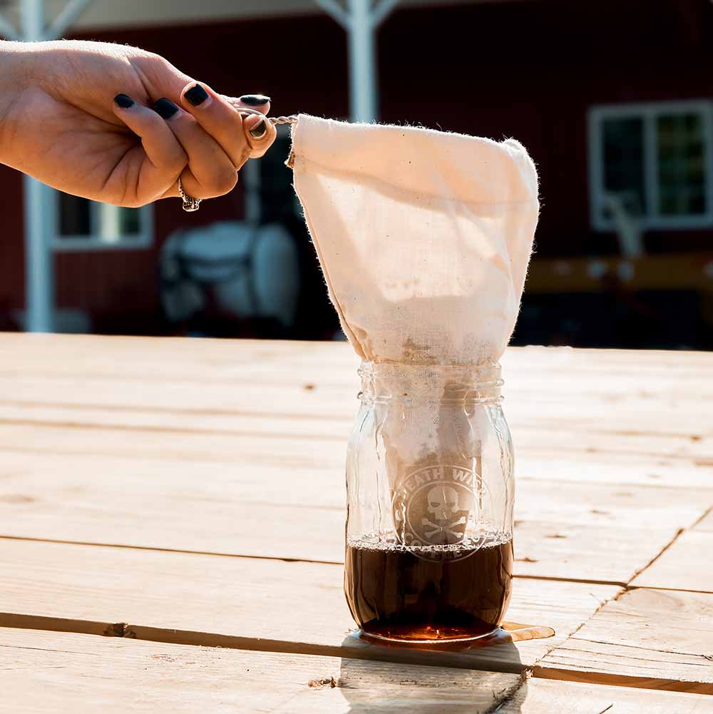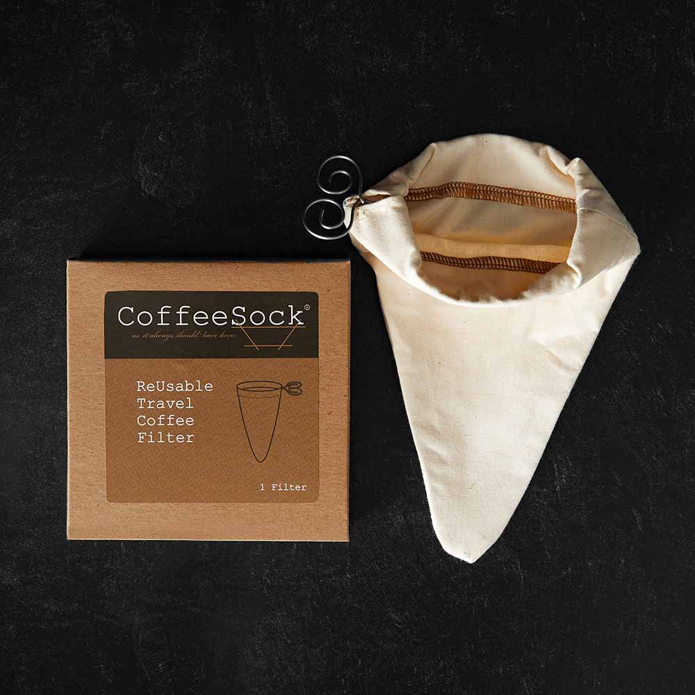 Each brew kit includes (1) Etched Logo Mason Jar and (1) Coffee Sock Reusable Travel Coffee Filter.