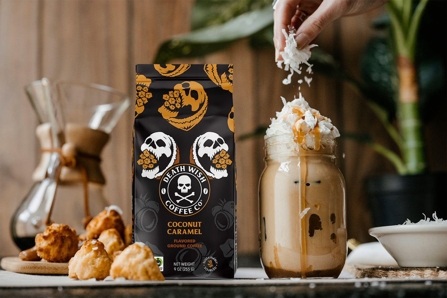 • Shop Coconut Caramel flavored Death Wish Coffee.