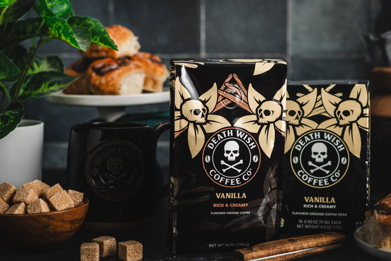 A blend of arabica and robusta beans perfectly paired with vanilla for a bold, smooth taste and a subtly sweet finish made for sipping in solitude. A heavy hitter brewed hot or over ice, drown your cup in cream and sugar for the full death-by-decadence experience.